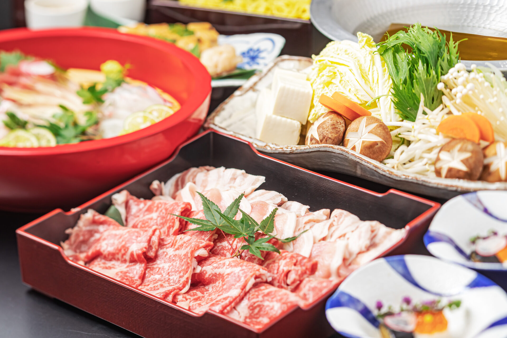 牛・豚しゃぶ(豚バラ、豚ロース、牛肩ロース、野菜、〆ラーメン)